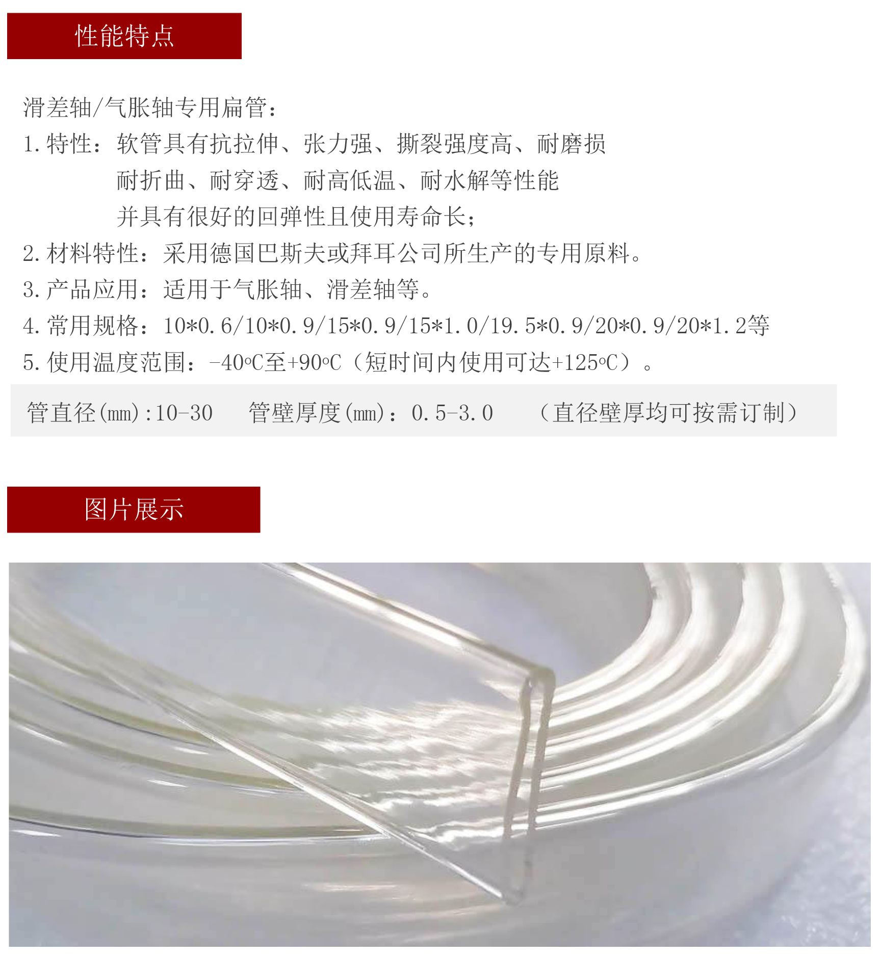 采用德國巴斯夫或拜耳公司所生產的專用原料,具有抗拉伸、張力強、撕裂強度高、耐磨損耐折曲、耐穿透、耐高低溫、耐水解等性能并具有很好的回彈性且使用壽命長!