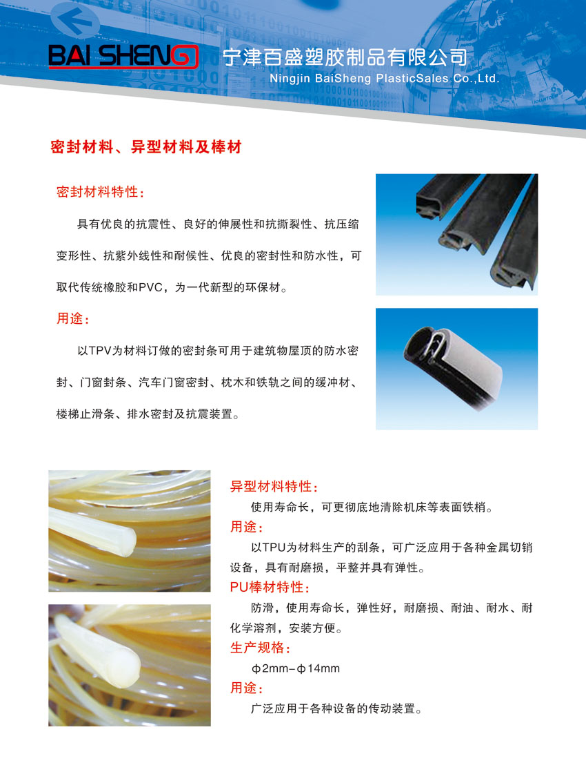 您的位置: 首頁 > 產品特性 > 密封材料、異形材料及棒材